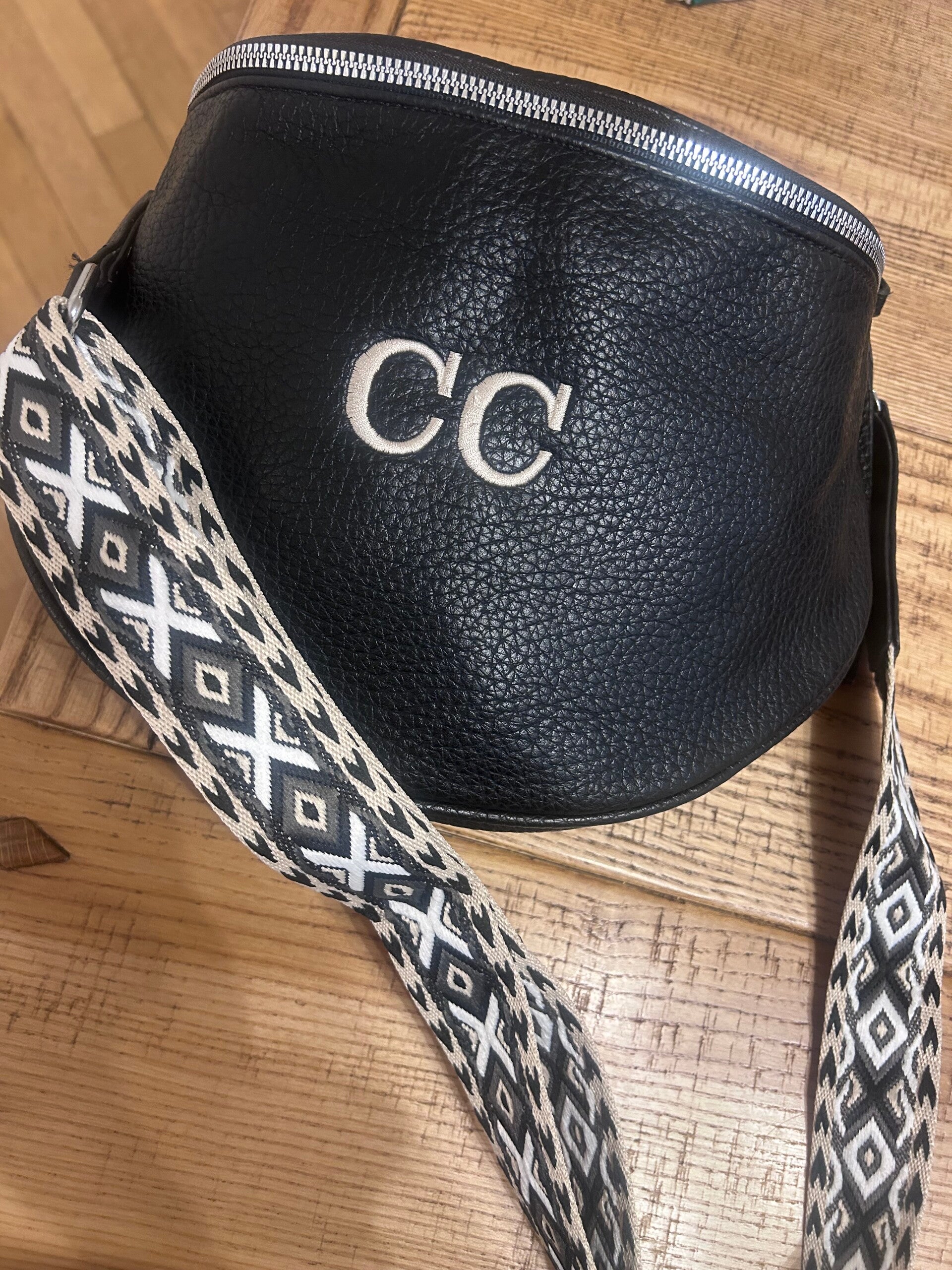Maruapione nero dettagli argento tracolla regolabile
